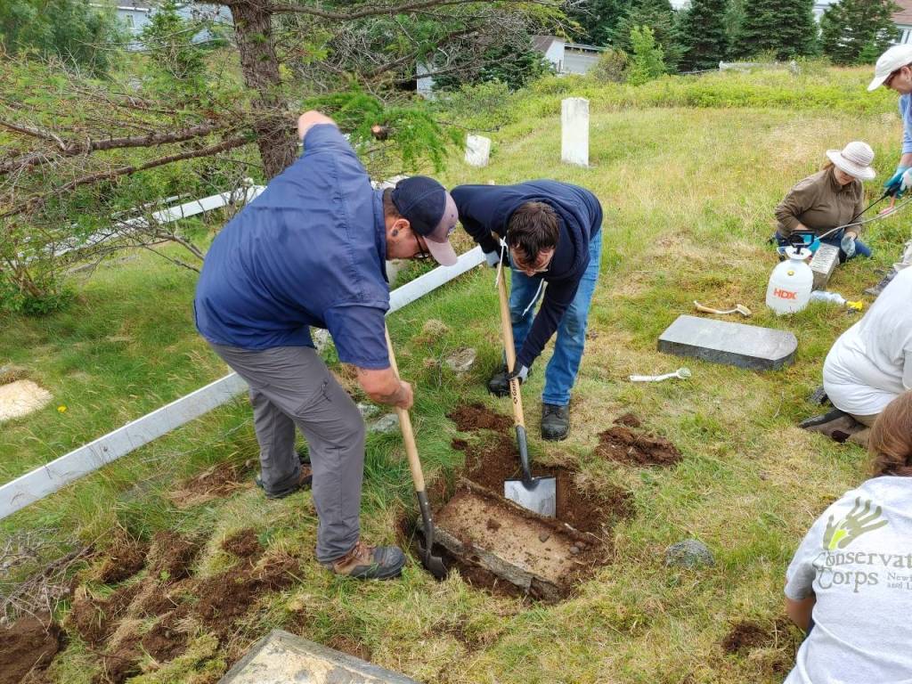 Below are the before-and-after photos of the restorations we undertook during the workshop. Thank you again to HeritageNL for organising the workshop, and all of our participants! It was a great day and the cemetery looks even better for it! And a huge thank you to the Conservation Corps. Green Team, you were a huge help and we loved having you join the team for the day!
