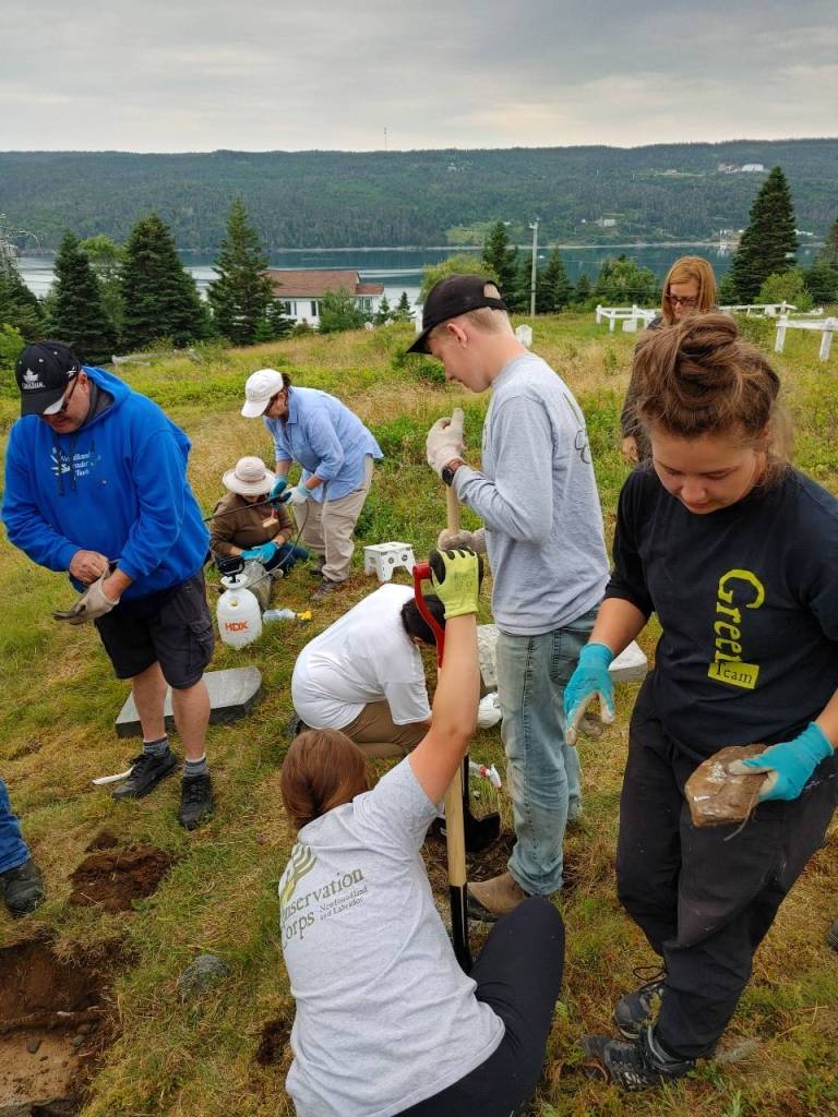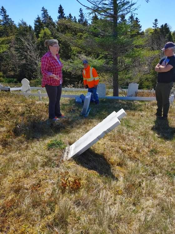 Earlier this month we ran a gravestone repair workshop with HeritageNL, at the historic cemetery in the Cape Broyle. Just like our first workshop earlier this summer, we had a wonderful turnout and everyone really put in their all! We had 18 participants in this workshop and 26 in the earlier gravestone cleaning workshop. Today’s blog post will be about the repair workshop, and we are so proud of all the hard work everyone put in to restore the four gravestones that we worked on that day!