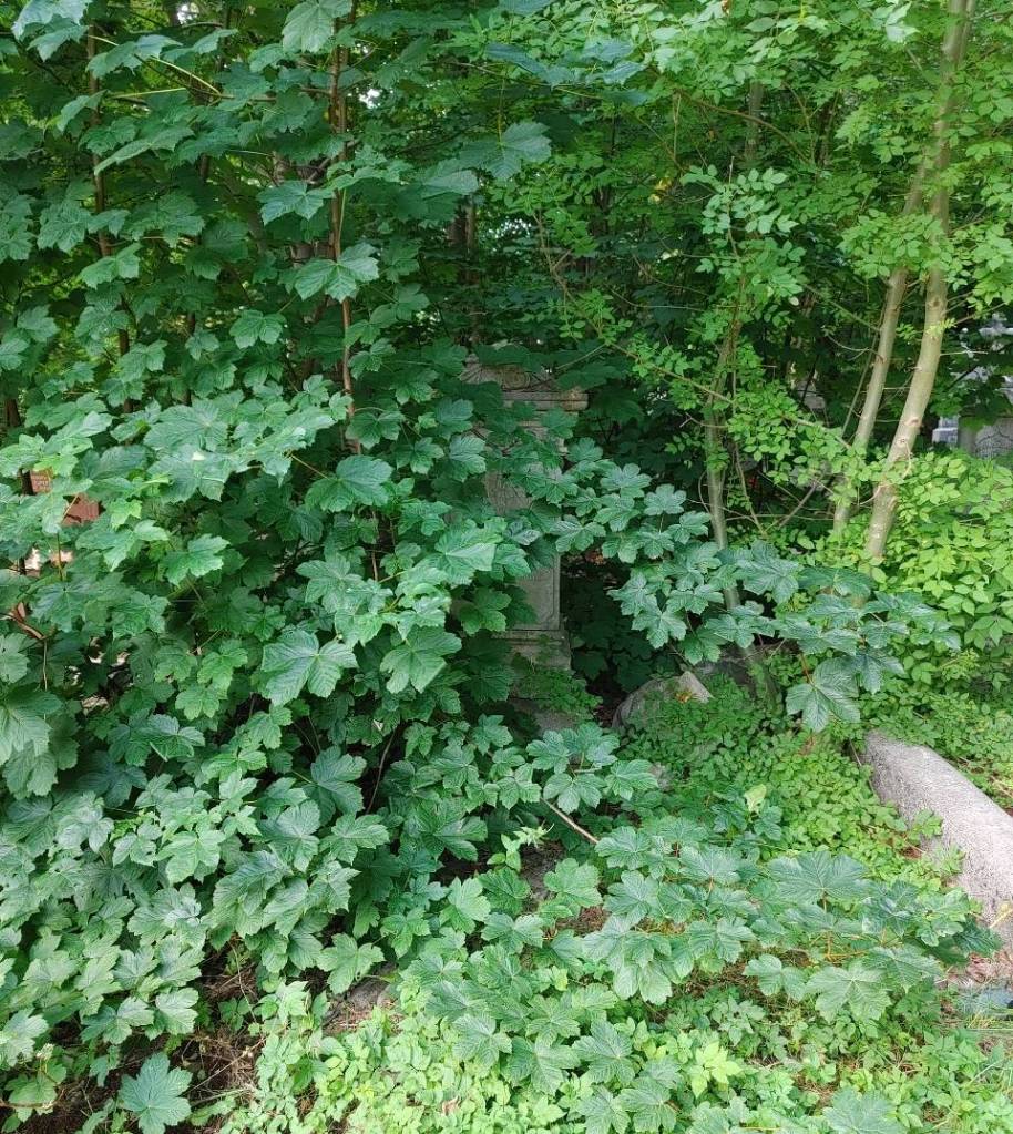 The Thorburn Monument was completely overgrown when we got to it. This monument, to Sir Robert Thorburn, former Premier of Newfoundland, and his wife Lady Susanna Janetta Thorburn, who played a major roll in the women’s suffragette movement in the province. Their monument had seen several periods of restoration over the years, and the angel statue that once sat on top of the capped pillar monument was broken into several pieces and laying face-down at the back of the plot.