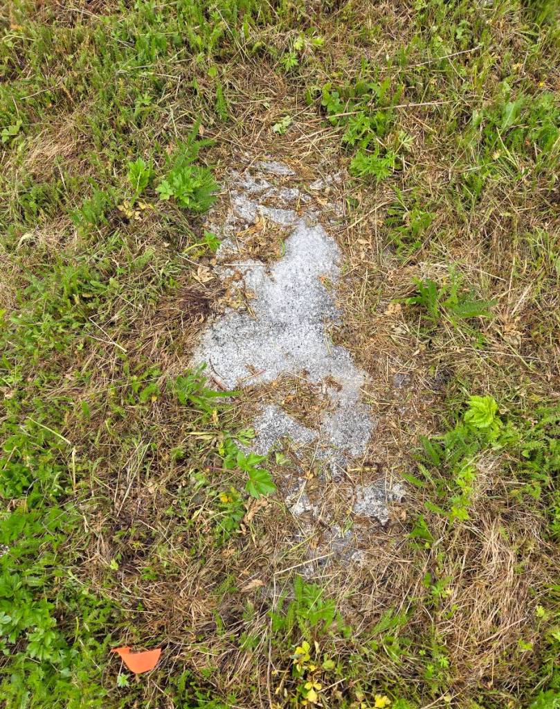 We also got to reset the gravestone of Aquila John Hedderson. Made from imported limestone, it had no iconography on the stone, and a portion of the top had cracked off, either from general weathering or pressure from a lawnmower while it was laying down (or both). This stone, while looking very simple, was extremely exciting! In the section that would be below ground when standing upright, we found the inscription ‘C. Curtis / Poole‘, the name of the carver and their location in England! It is extremely rare to find carver names on imported gravestones, so this is a very exciting discovery! You can just see the name below, and we made sure to document it in the report for Battle Harbour.